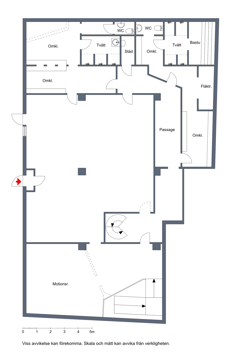 Lokalytan är fördelad på ett större träningsrum med speglar samt ett mindre. Här finns omklädningsrum, wc, dusch och bastu. Fastigheten är centralt belägen med närhet till kommunikationer. Modern ventilationsanläggning.